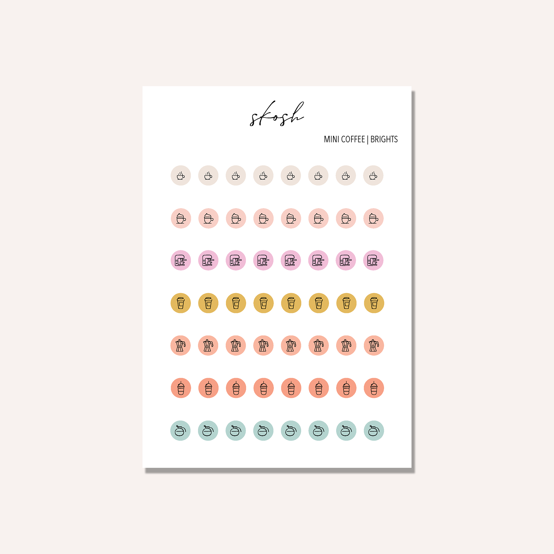 These coffee-themed stickers are perfect for planners, journals, calendars, and notebooks. A variety of coffee styles to suit any taste or mark your next coffee date.