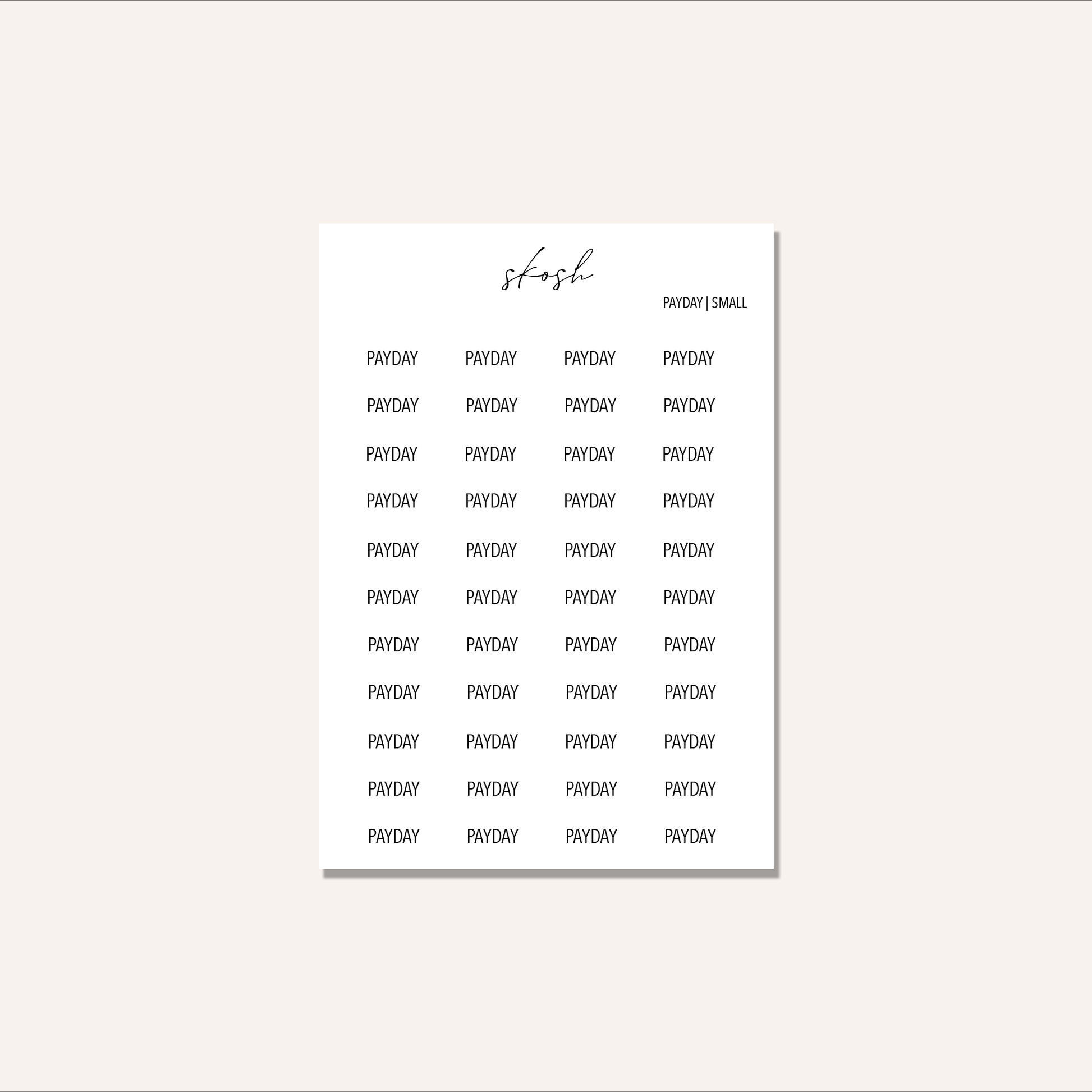 Mark your paydays in style with these small, minimalist PAYDAY stickers—perfect for planners, journals, calendars, and notebooks. Designed to fit neatly in small grid planners, these functional stickers help you keep track of your finances with ease and simplicity.