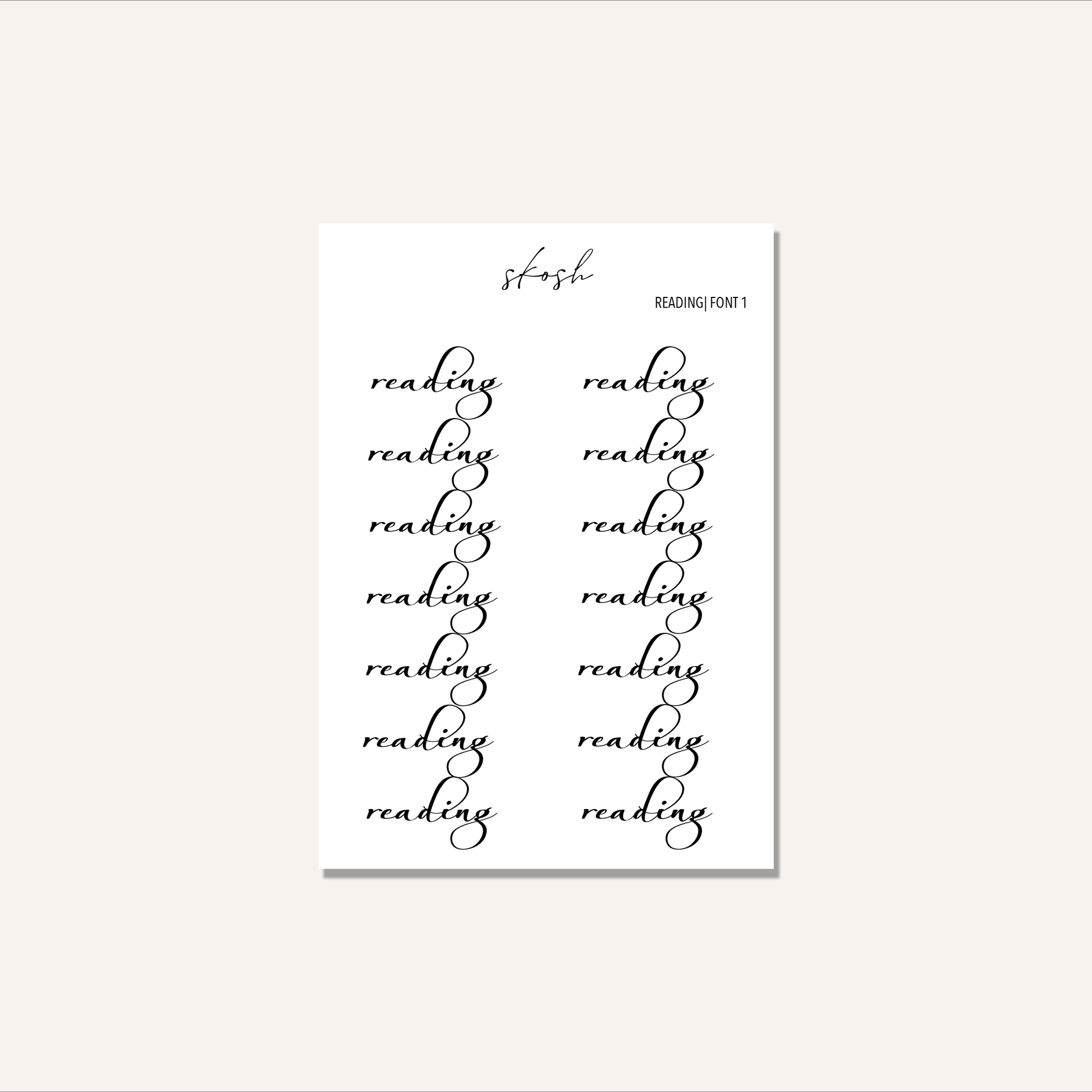 - One sheet of “READING” typography stickers