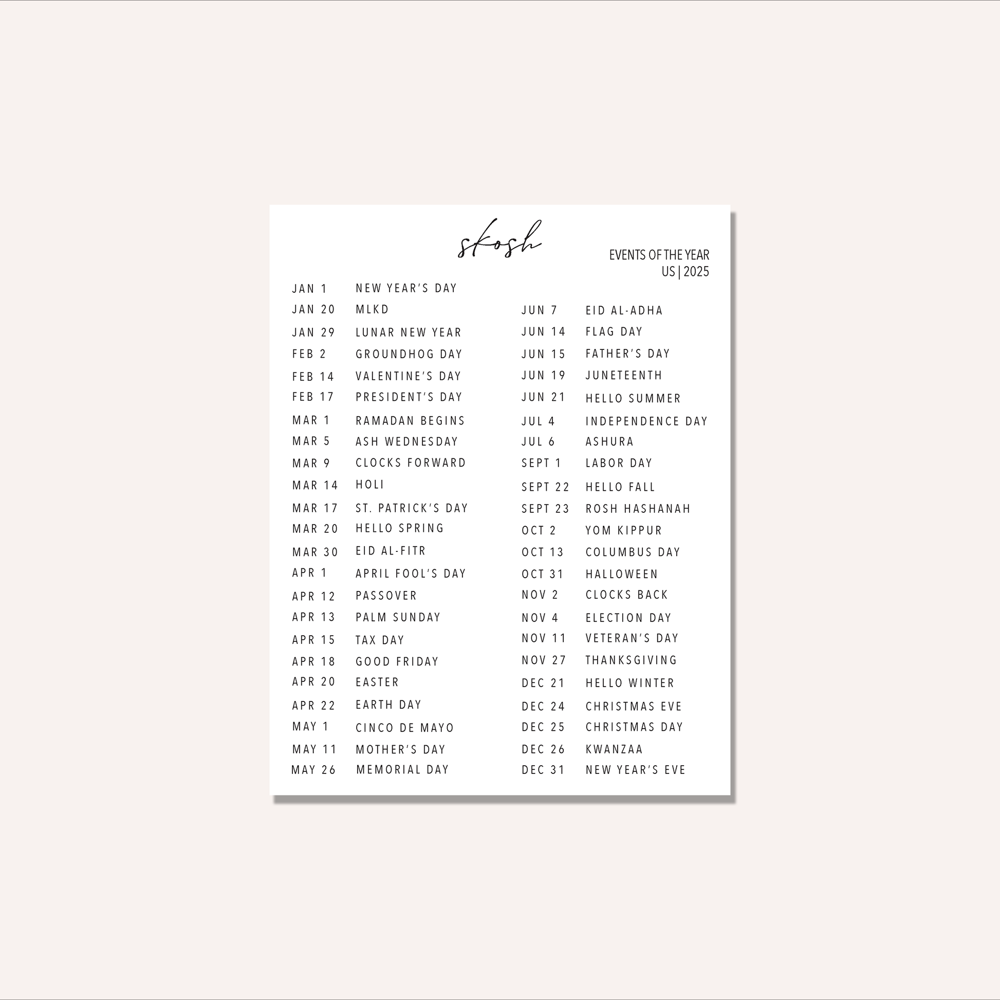 Mark holidays and special events in a clean, minimalist way with these tiny 2025 event + holiday stickers. Perfect for planners, journals, calendars, and notebooks—especially those with smaller grids. These stickers let you add important dates without cluttering your layout.